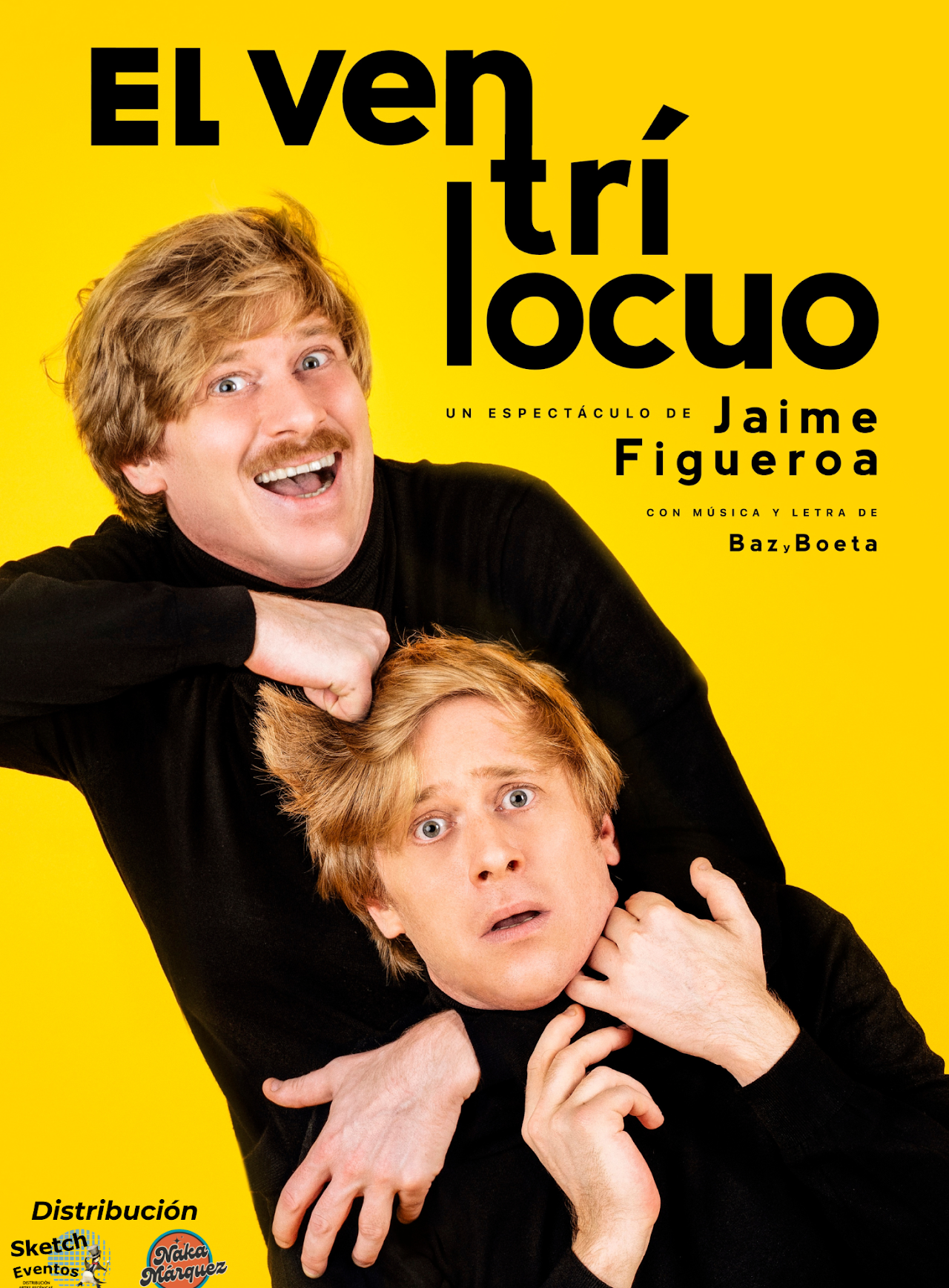 El ventrílocuo es el es el título de la obra protagonizada por Figueroa & Company. Jaime, “El ventrílocuo”, siempre llega solo, se presenta solo, actúa solo y, desde luego, habla solo. Sin embargo, cuando él está en escena, una multitud de seres nos acompaña y las cosas, hasta las más insignificantes, toman la palabra: un trozo de papel, un verdadero circo de pulgas o un buitre leonado que canta gospel. ¿Serás capaz de pillarle moviendo los labios durante el espectáculo?