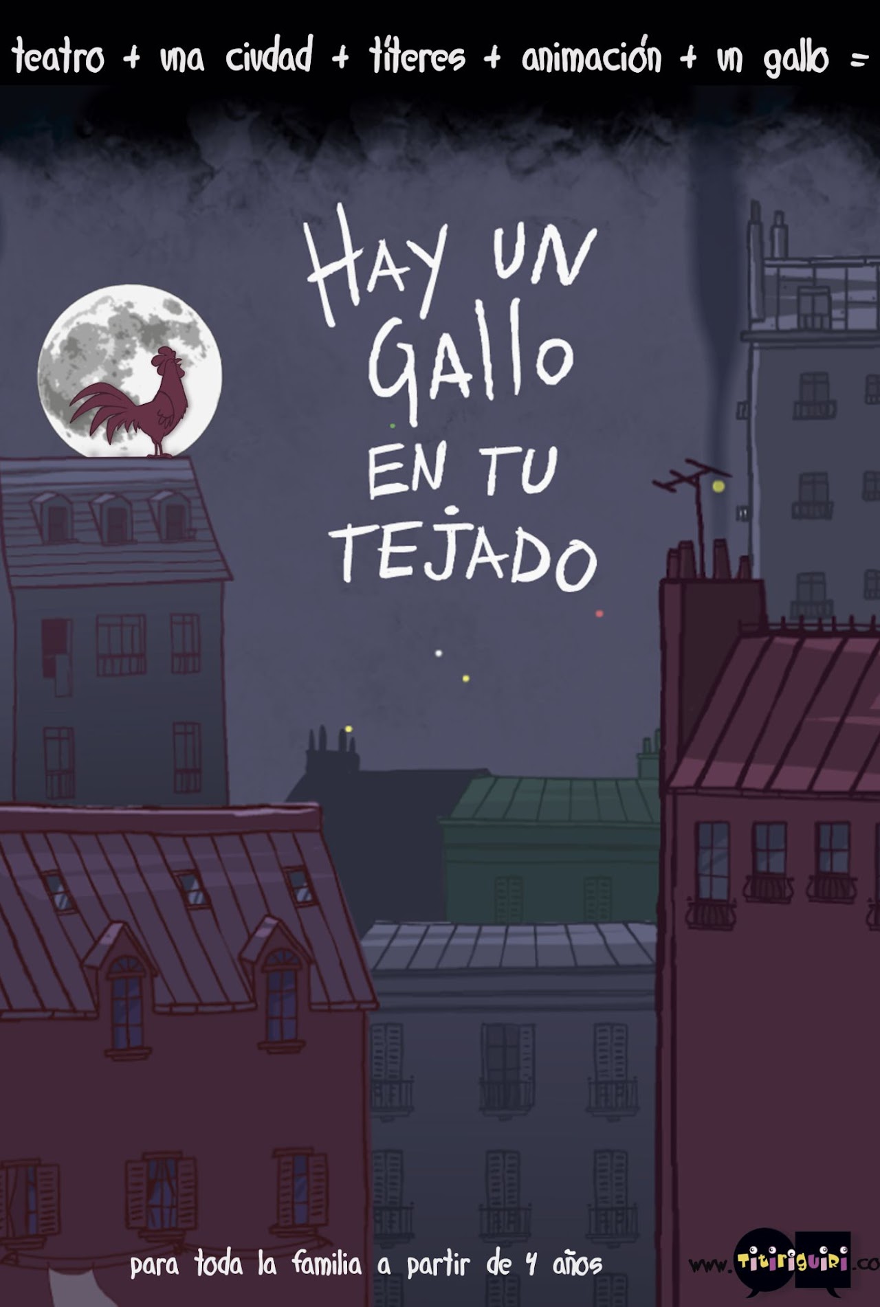 Hay un gallo en tu tejado, obra de teatro para títeres, en la que un gallo, que se encuentra atrapado en el tejado de un edificio de una ciudad, es visto por la vecina de abajo, quien intrigada por el canto de un gallo que suena como el mugido de una vaca, le pregunta el porqué de su canto. Es entonces cuando da comienzo una historia que nos llevara a un campo lleno de vacas divinas, a conocer el día a día de unas gallinas ponedoras y de Maca, una simple vaca…